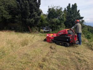 雑草が長年放置されて「樹木化」してしまった場合や、敷地が非常に広い場合は、刈払機だけでは効率が上がりません。そんなときに役立つのが乗用タイプの草刈り機です。乗用タイプなら短時間で広範囲を処理でき、体力的な負担も大幅に軽減できます。ユタカ農機のくさかり事業部では、乗用タイプでの対応も可能です。街の便利屋さんの草刈りだと刈払機だけの対応になることも多く、作業には何倍も時間を要することがあります。